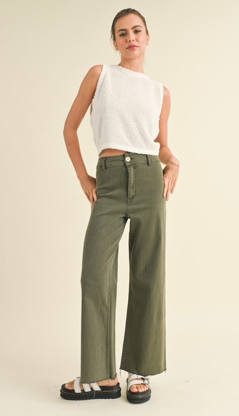 Miou Muse Straight Wide Leg Denim Pants- Faded Olive