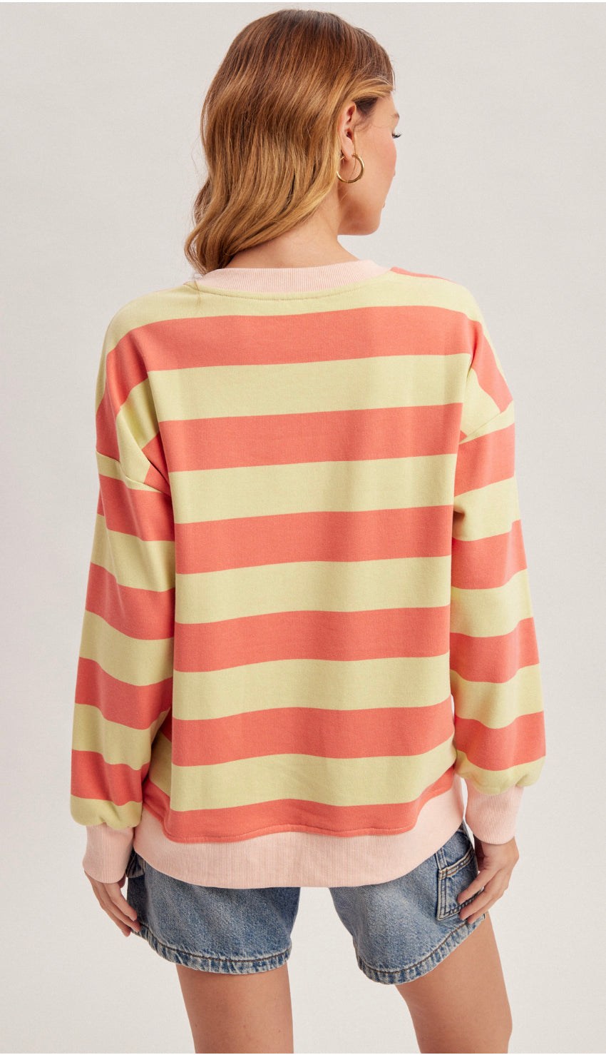 Sunday Funday Color Block Stripe Sweatshirt- Strawberry Lemonade