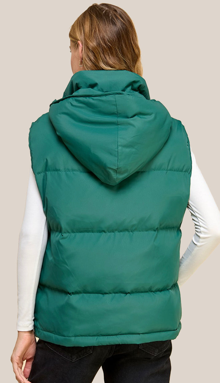 Sarah High Neck Puffer Vest- Pine