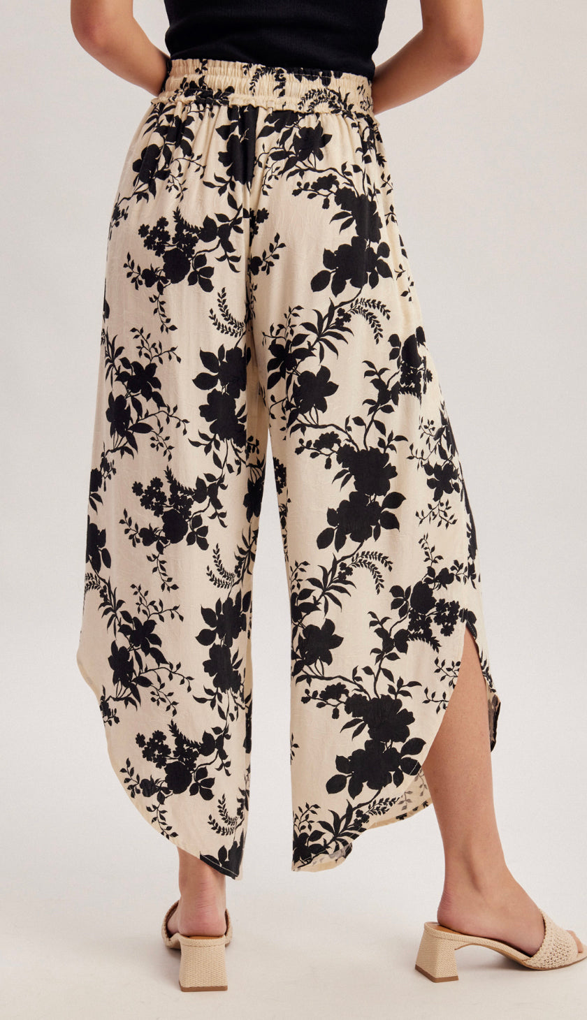 A jacquard floral flyaway tulip hem stretched waistband pants. These are so comfortable! You feel like you're in your pajamas but you're actually dressed up.