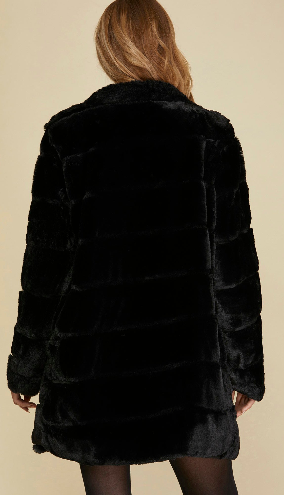 An essential if you live in the midwest! A faux fur jacket with side pockets with the softest feel to it. Made out of 100% polyester. Model is 5'8 wearing a size small. Fits true to size.
