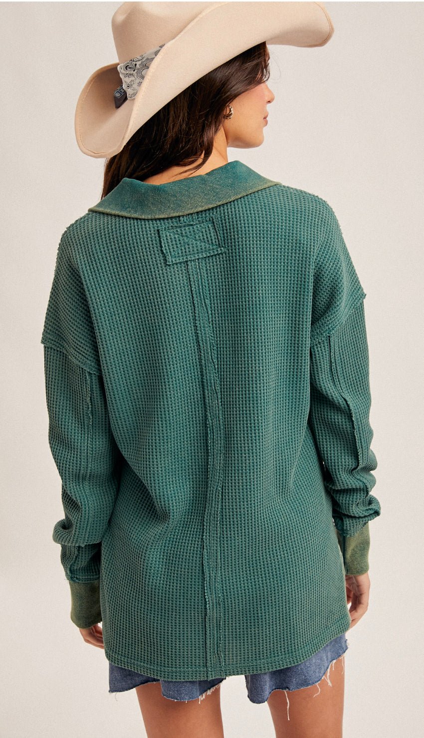 Kelli Washed Thermal Oversized Top- Forest Green
